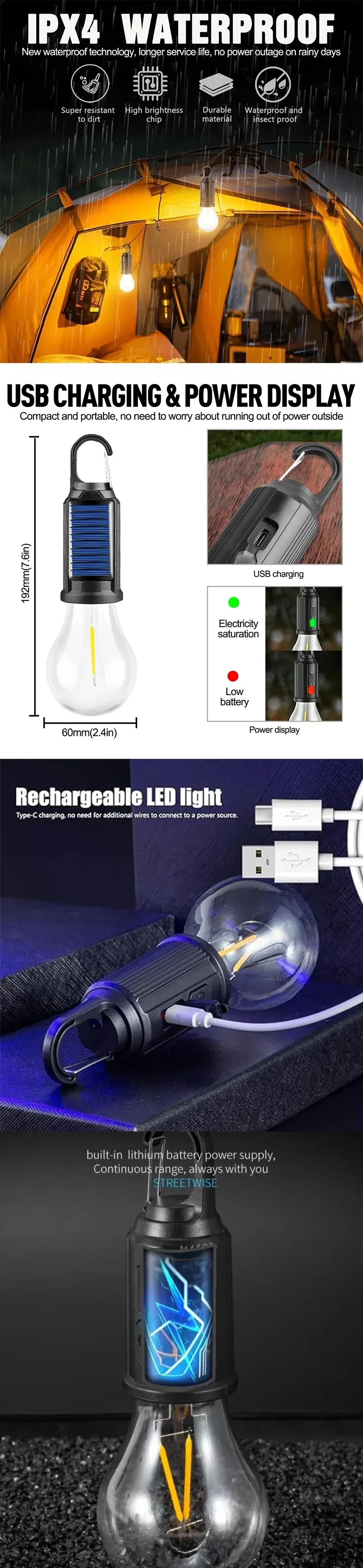 LED ক্যাম্পিং ল্যাম্প উইথ হুক